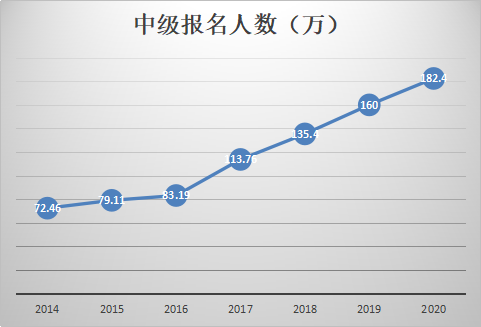 今年中级会计报名人数又创下新纪录,不过从报名人数来看,中级报名人数一直在激增: